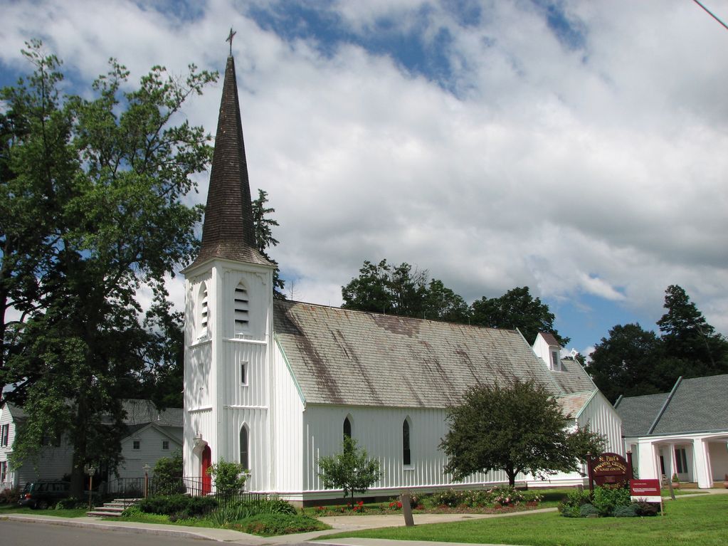 I googled photos of it and chose this one because it reminds me of my hometown church. The spire, the red door, the neighborhood location.
